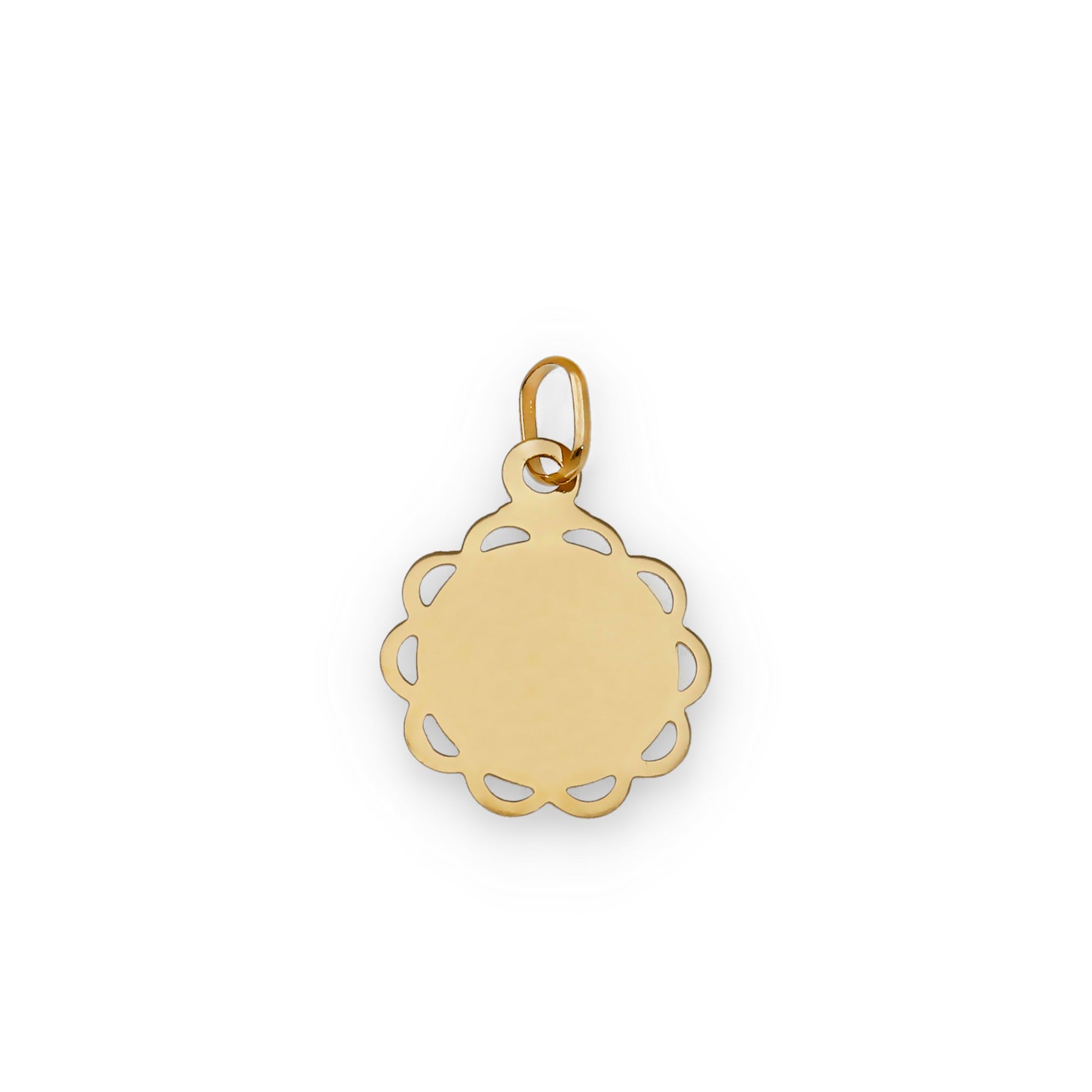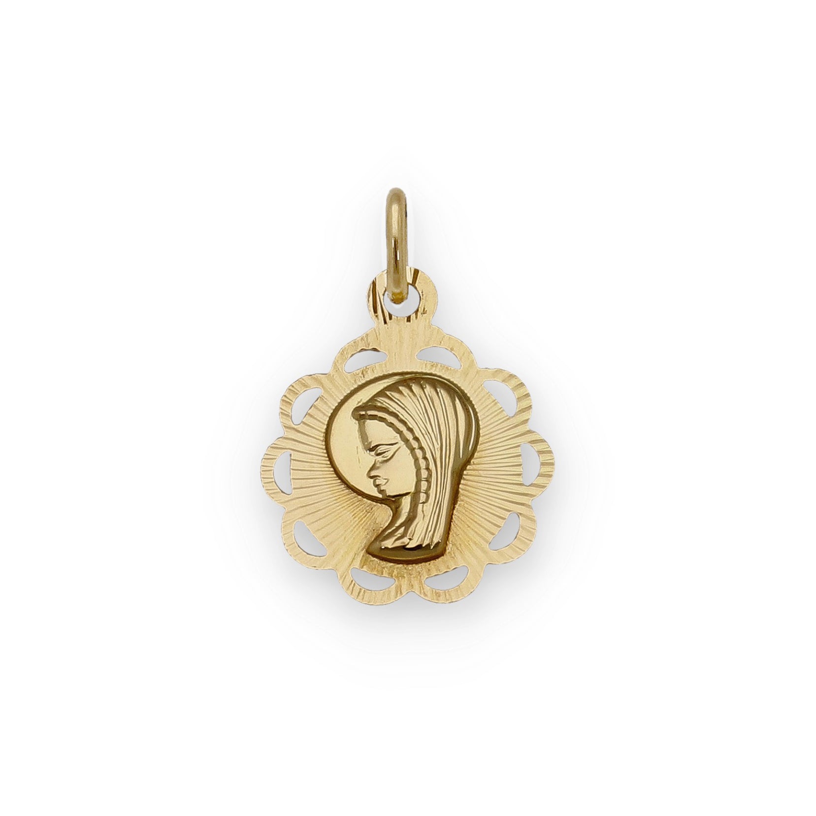 Presentamos esta delicada medalla de la Virgen Niña elaborada en oro de 18 quilates, con diseño redondo y elegante asa. Con unas medidas de 24.60 mm de alto y 16.00 mm de ancho, es una joya ideal para regalar en ocasiones especiales como comuniones.