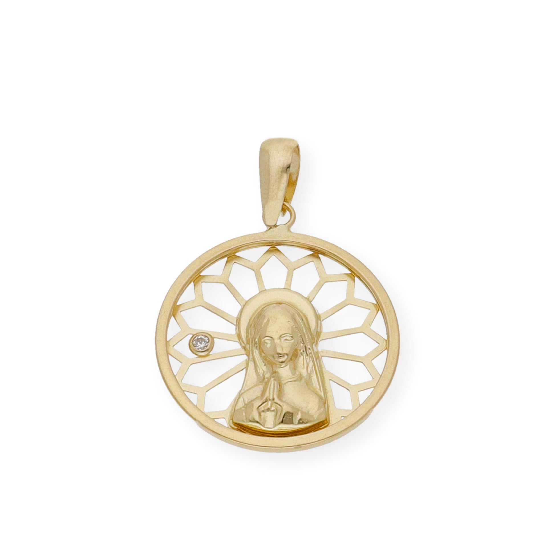 Medalla Virgen Niña en Oro 18K Redonda Calada con Circonita