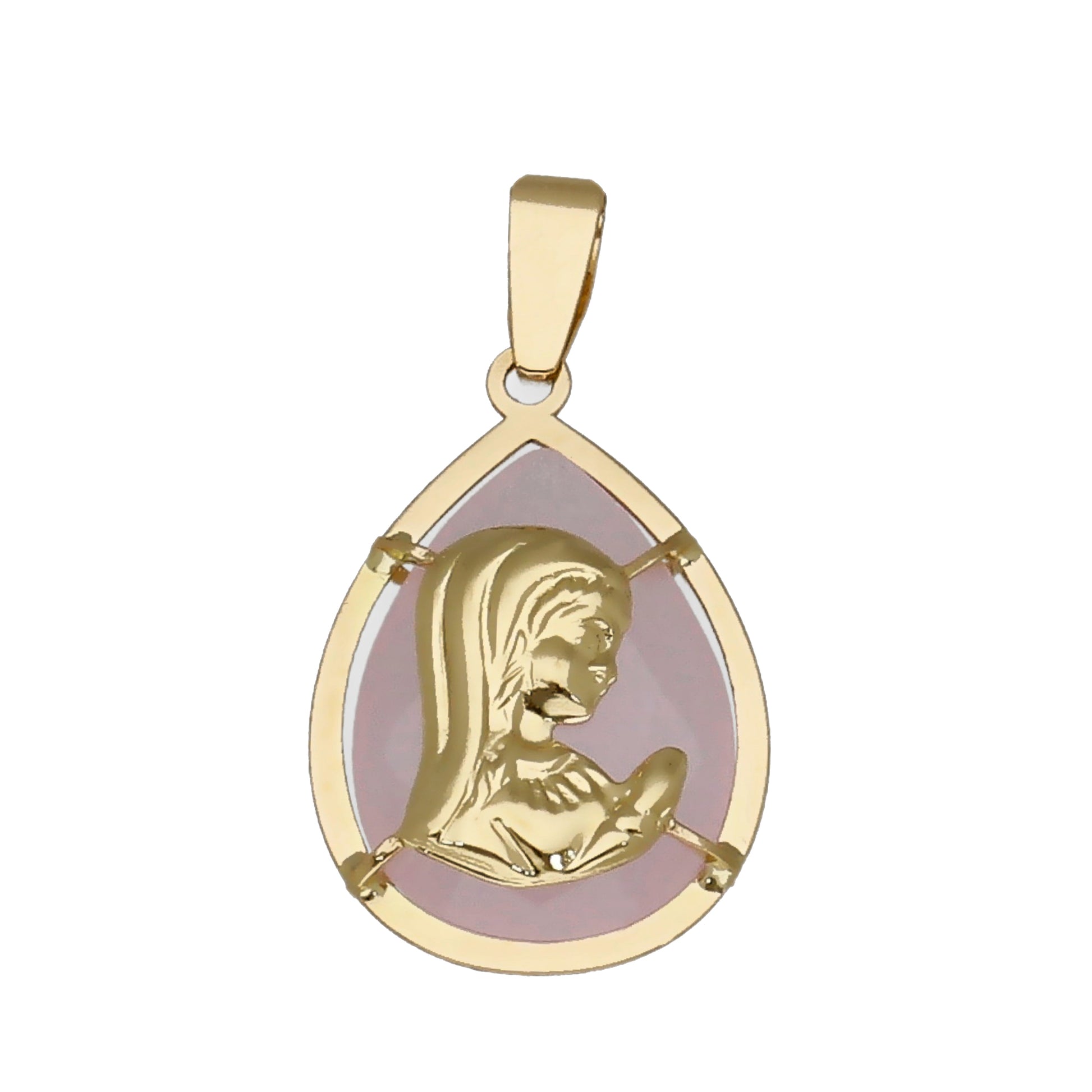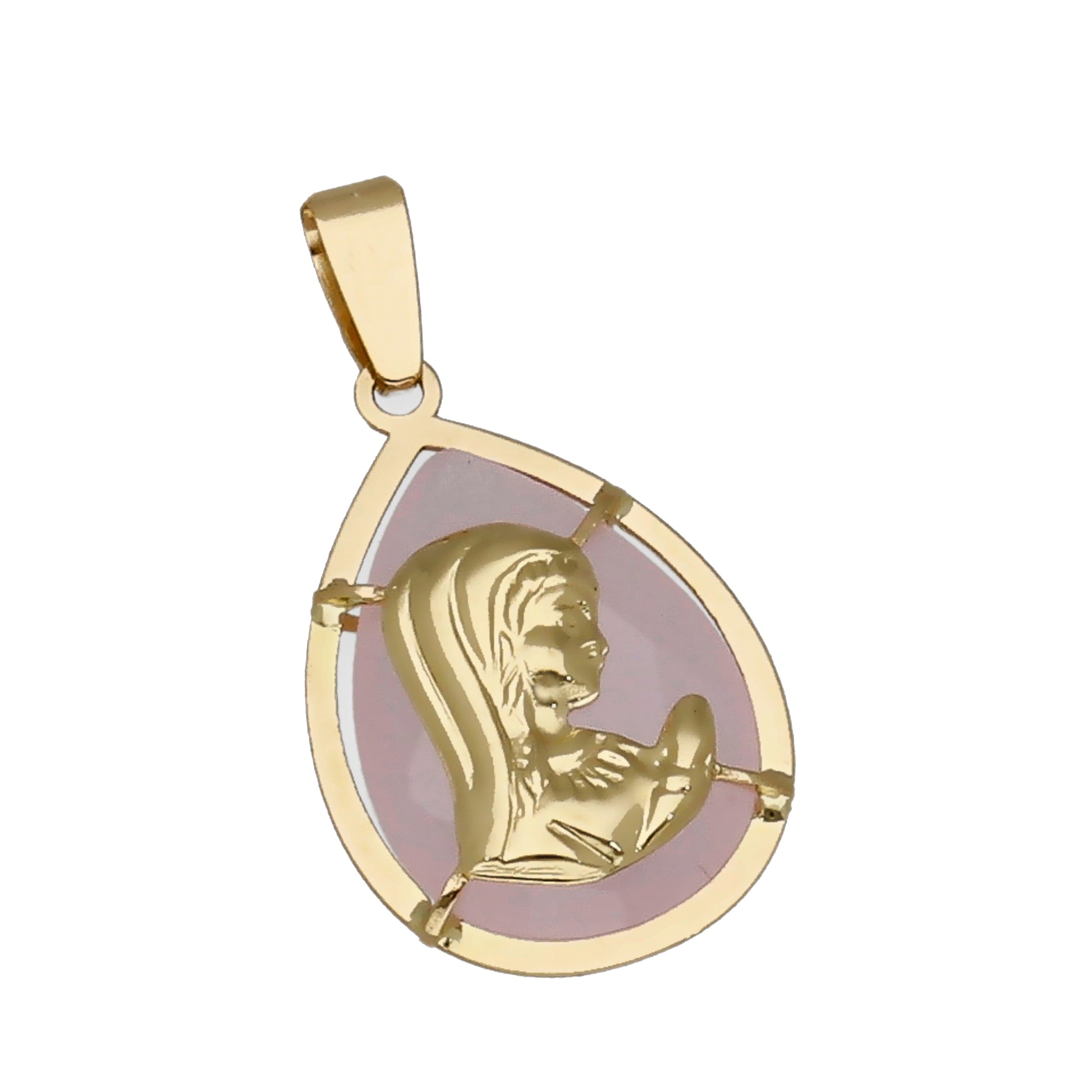 Medalla Virgen Niña en Oro 18k y Piedra Rosa Modelo Hell