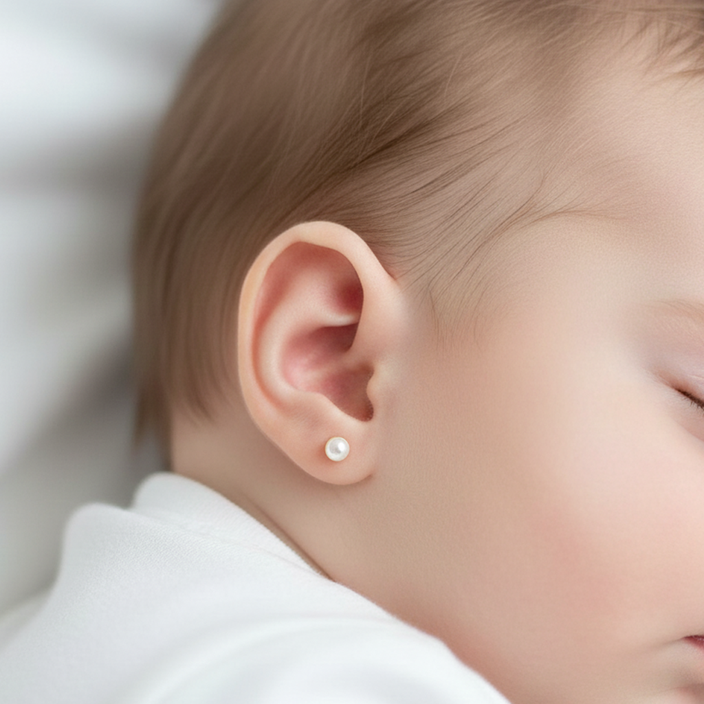 Las perlas blancas naturales seleccionadas a mano agregan un brillo suave y radiante a los pendientes de tu bebé.