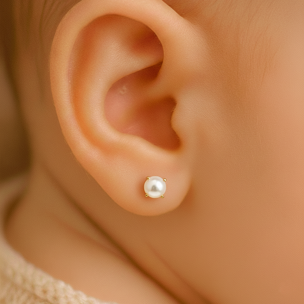 Pendientes Bebé Oro Y Perlas en Patillas 4 mm