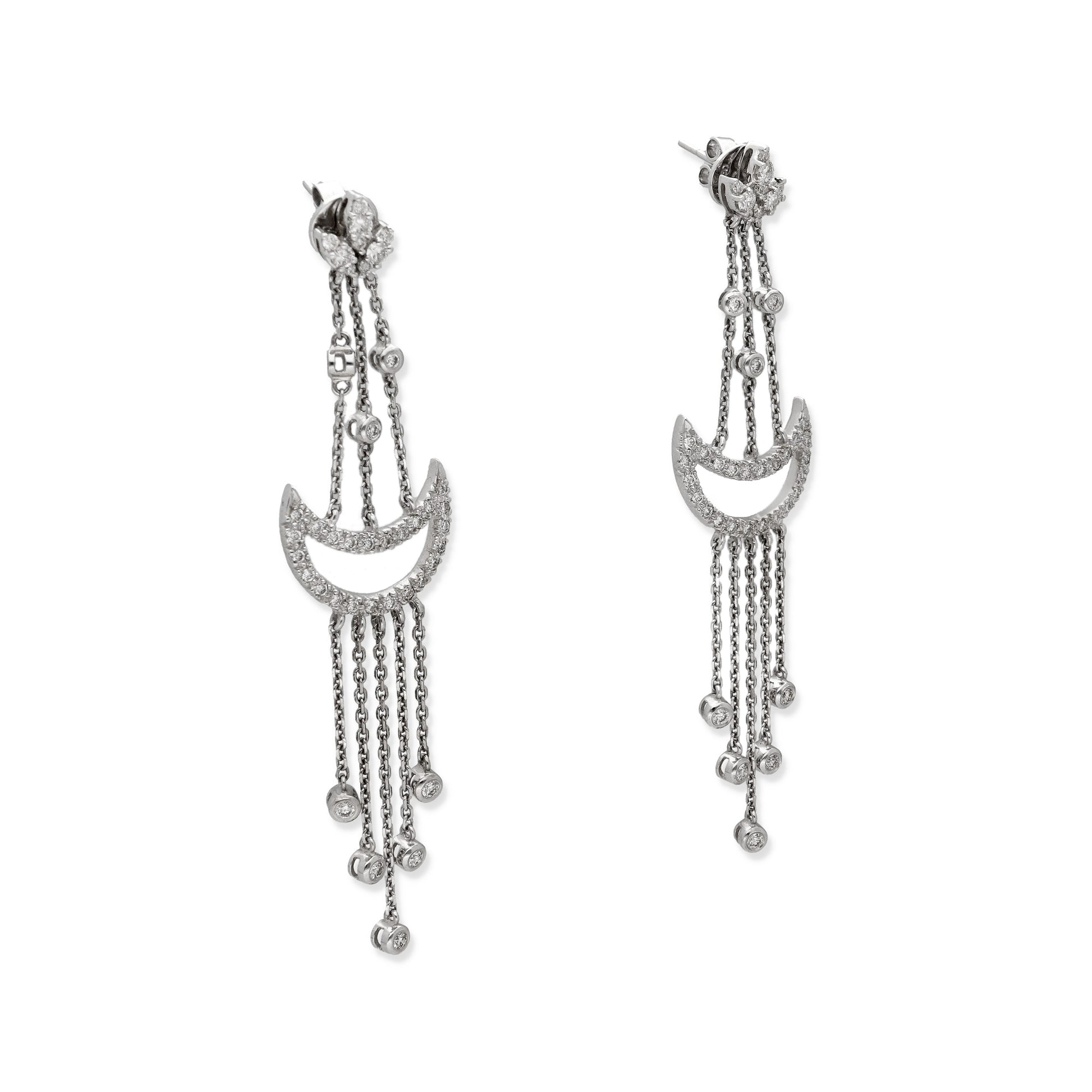 Los pendientes Amaltea son una creación de alta joyería que evoca la magia y la feminidad de las noches estrelladas. Elaborados en oro blanco de 18 quilates, su diseño combina elegancia celestial y movimiento fluido en una composición etérea y sofisticada.