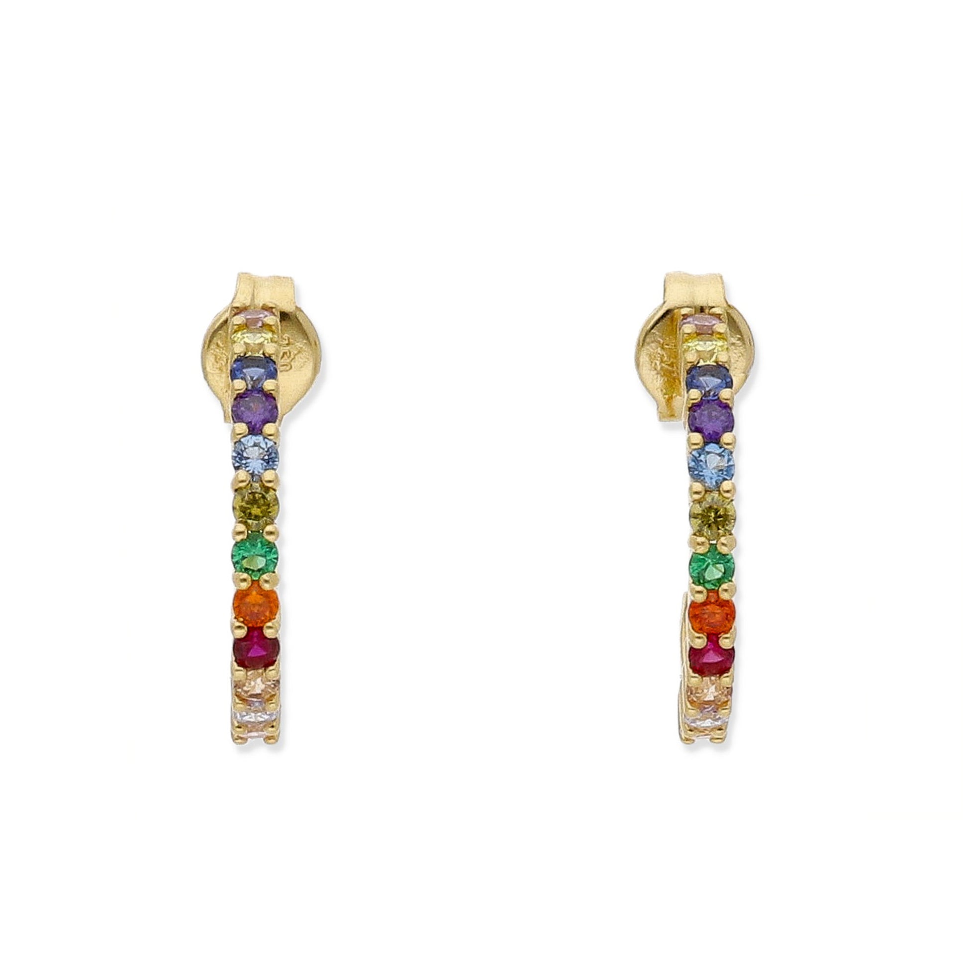 Pendientes Iris Medio Aro con Circonitas de Color y Oro 18k
