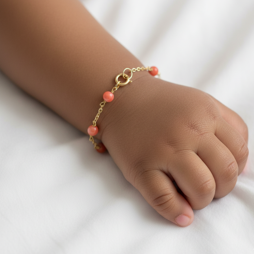 Pulsera para Bebé de Coral Natural y Oro de Ley 18k