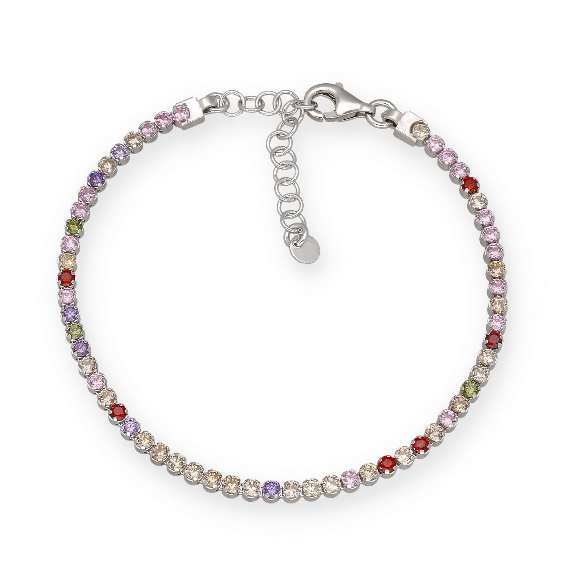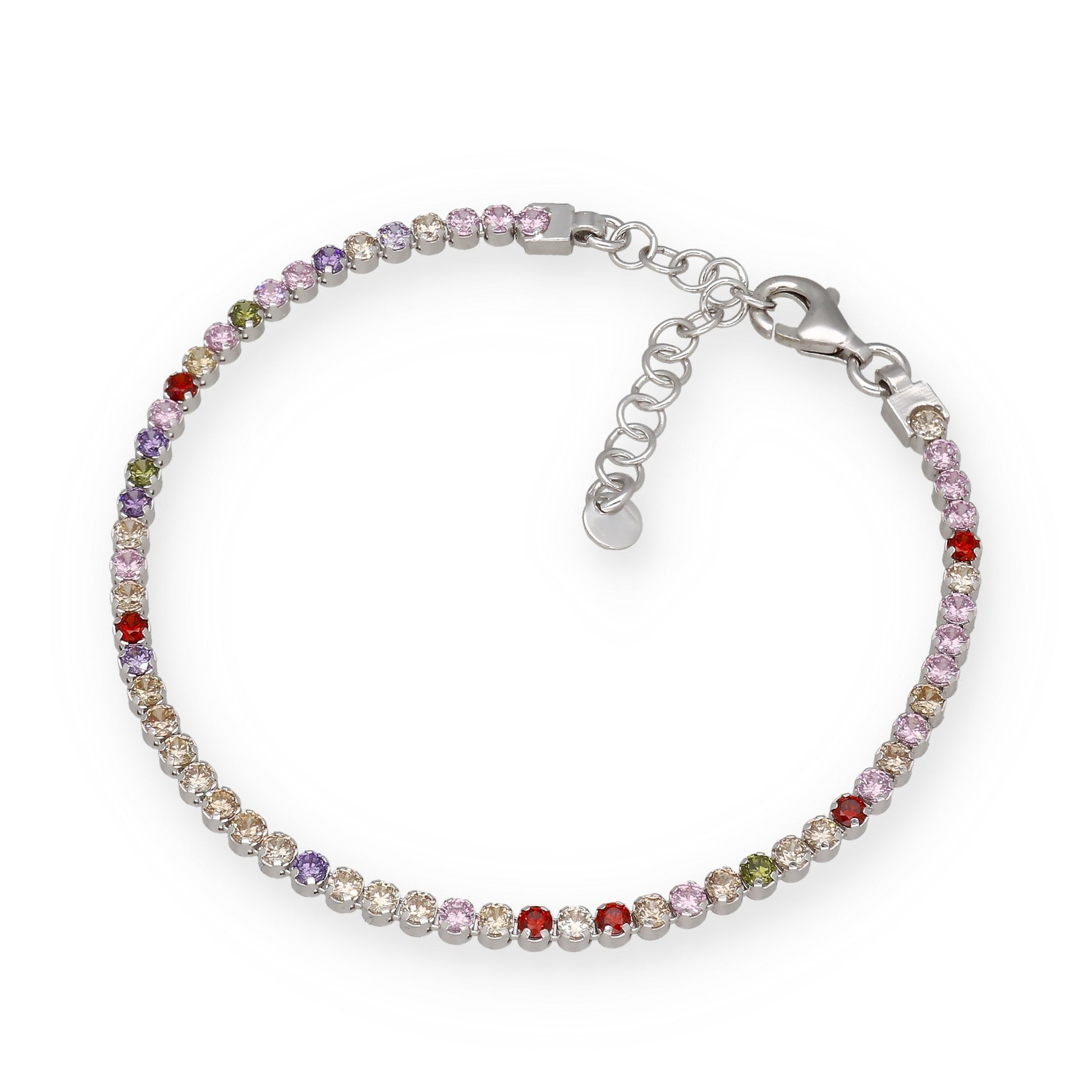 Pulsera Riviere en Plata de Ley 925 con Circonitas Redondas Multicolor