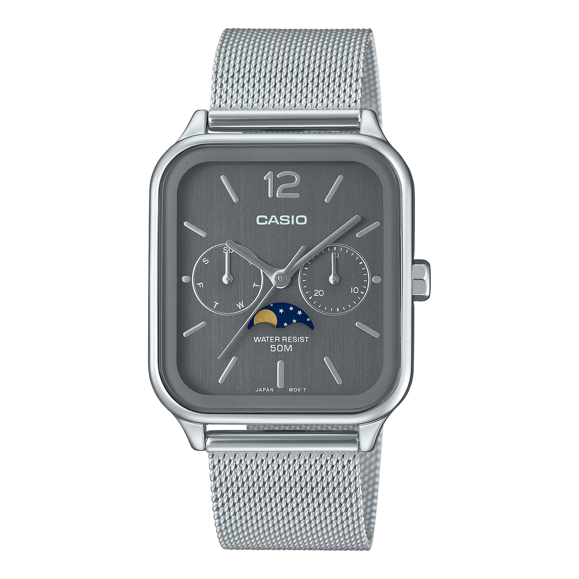 El MTP-M305M-8AVER fusiona la moda sofisticada con el diseño lunar clásico. No te pierdas de nada, ya sea que estés en horario laboral o fuera de él.