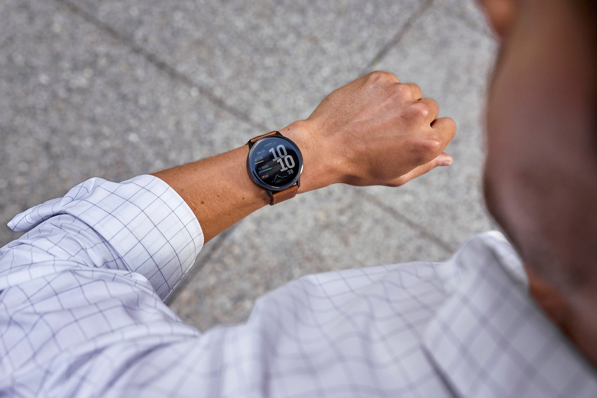 Reloj Garmin Venu® 4 - 45 mm Bisel Plateado Correa de Cuero Marrón 010-03014-03