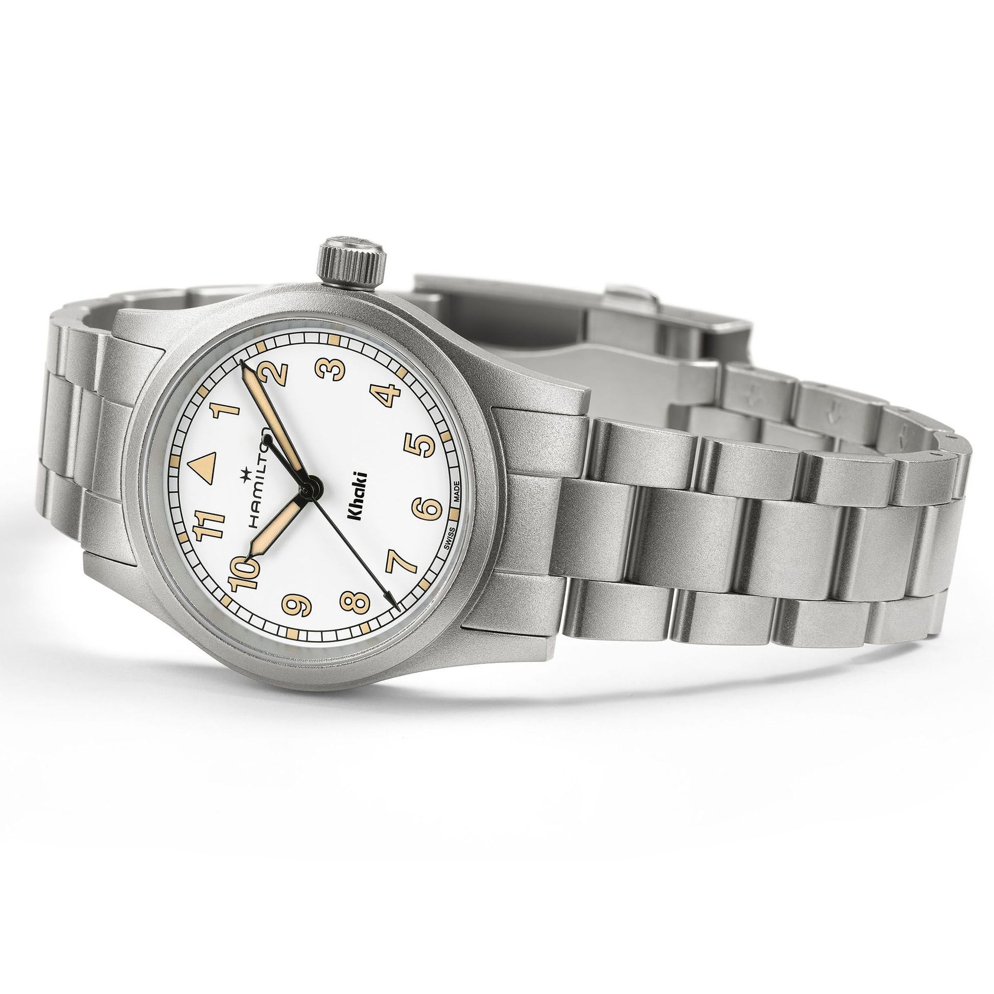 Reloj Hamilton Khaki Field Quartz 33mm H69301110, Listo para la aventura, el Khaki Field Quartz es un compañero fiable y resistente, preparado para explorar nuevos horizontes. Inspirándose en nuestra reputación en cuanto a precisión, innovación y diseño funcional, el Khaki Field Quartz combina una esfera blanca refinada de 33 mm con un moderno brazalete de metal.