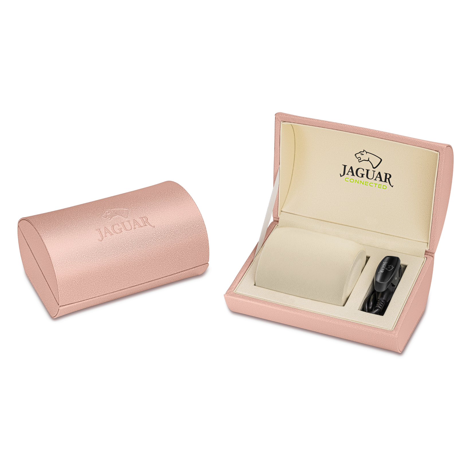 El Jaguar J982/1 es un reloj híbrido. Gracias a la tecnología connected de Jaguar, este reloj es capaz de ofrecer funciones inteligentes a su propietario. Viene equipado con una correa de acero inoxidable de color bicolor y con un cierre desplegable, que permite la regulación del tamaño de la correa de modo sencillo y preciso, para que el reloj se adapte a tu muñeca de la mejor manera posible.