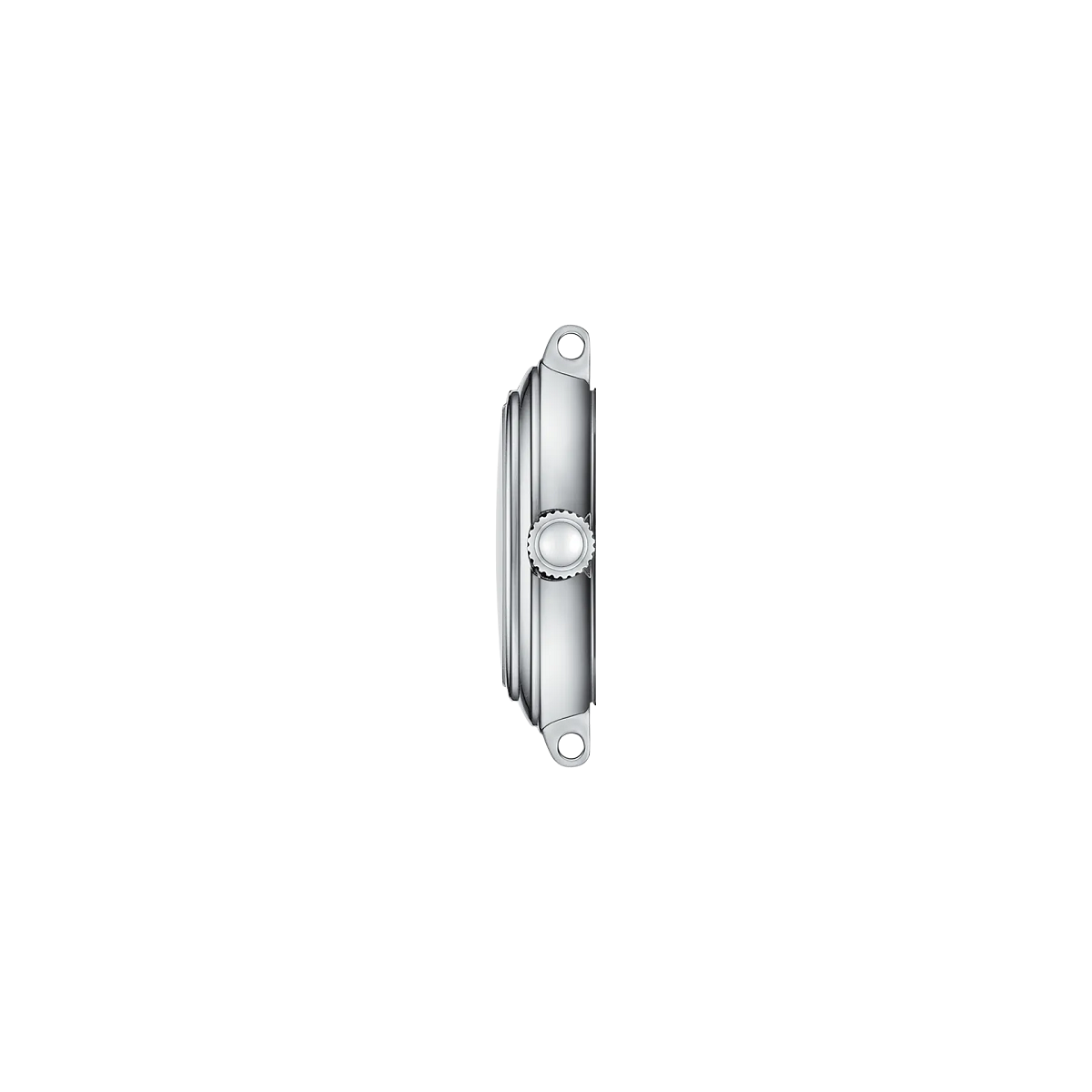 Sus pequeñas proporciones esconden numerosas características importantes, como una resistencia al agua de 5 bares, una versátil selección de combinaciones de caja, esfera y brazalete, y una práctica ventana de fecha a las 6.
