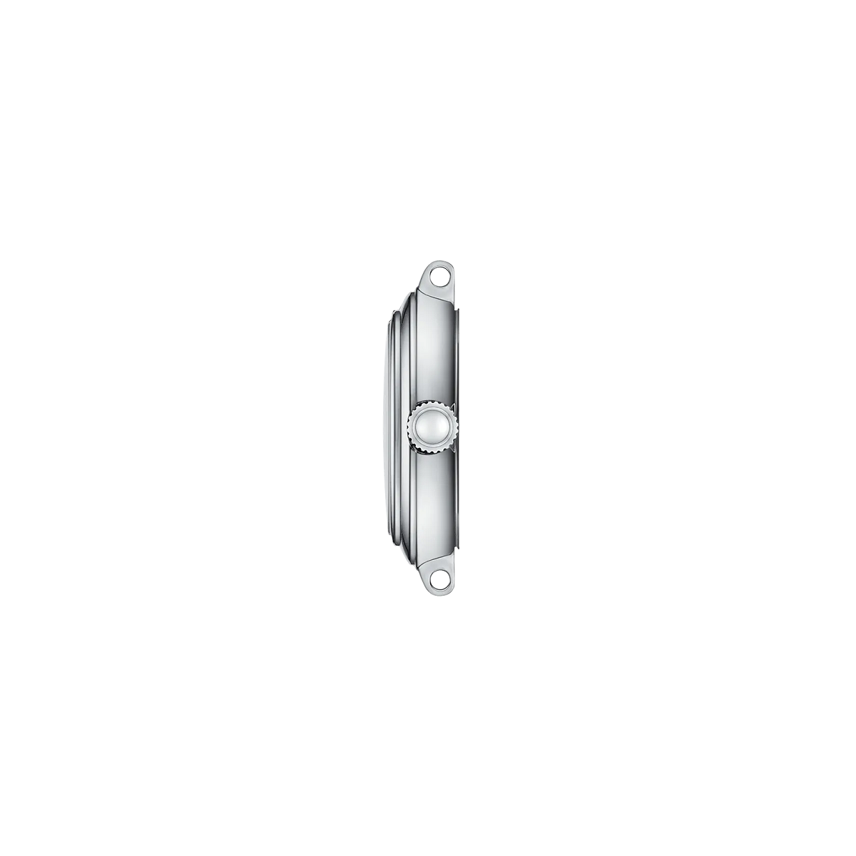 Sus pequeñas proporciones esconden numerosas características importantes, como una resistencia al agua de 5 bares, una versátil selección de combinaciones de caja, esfera y brazalete, y una práctica ventana de fecha a las 6.