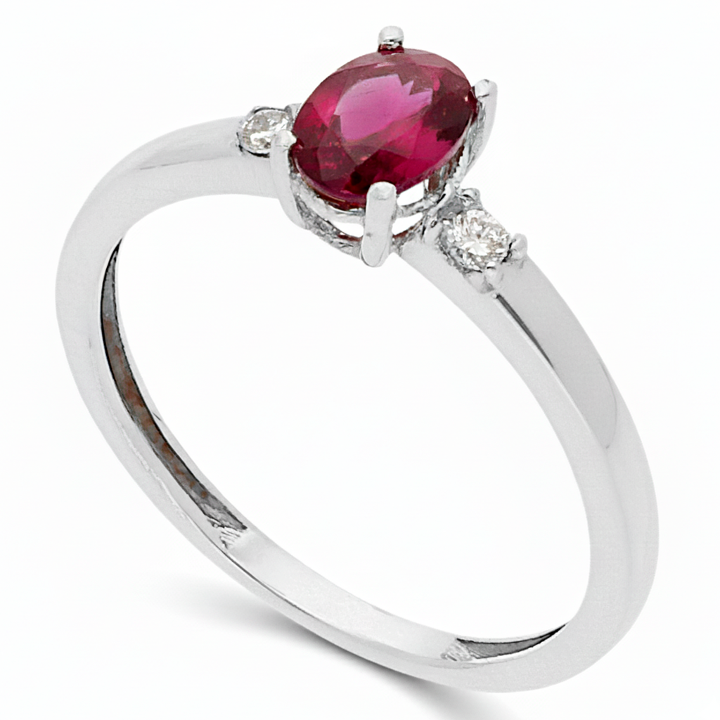 Anillo Victoria en Oro Blanco 18k con Diamantes y Rubí