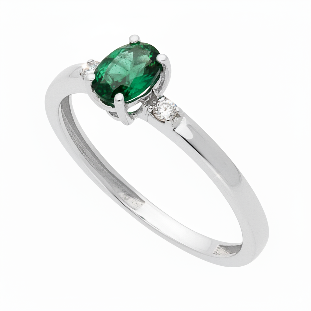 Anillo Victoria en Oro Blanco 18k con Diamantes y Esmeralda
