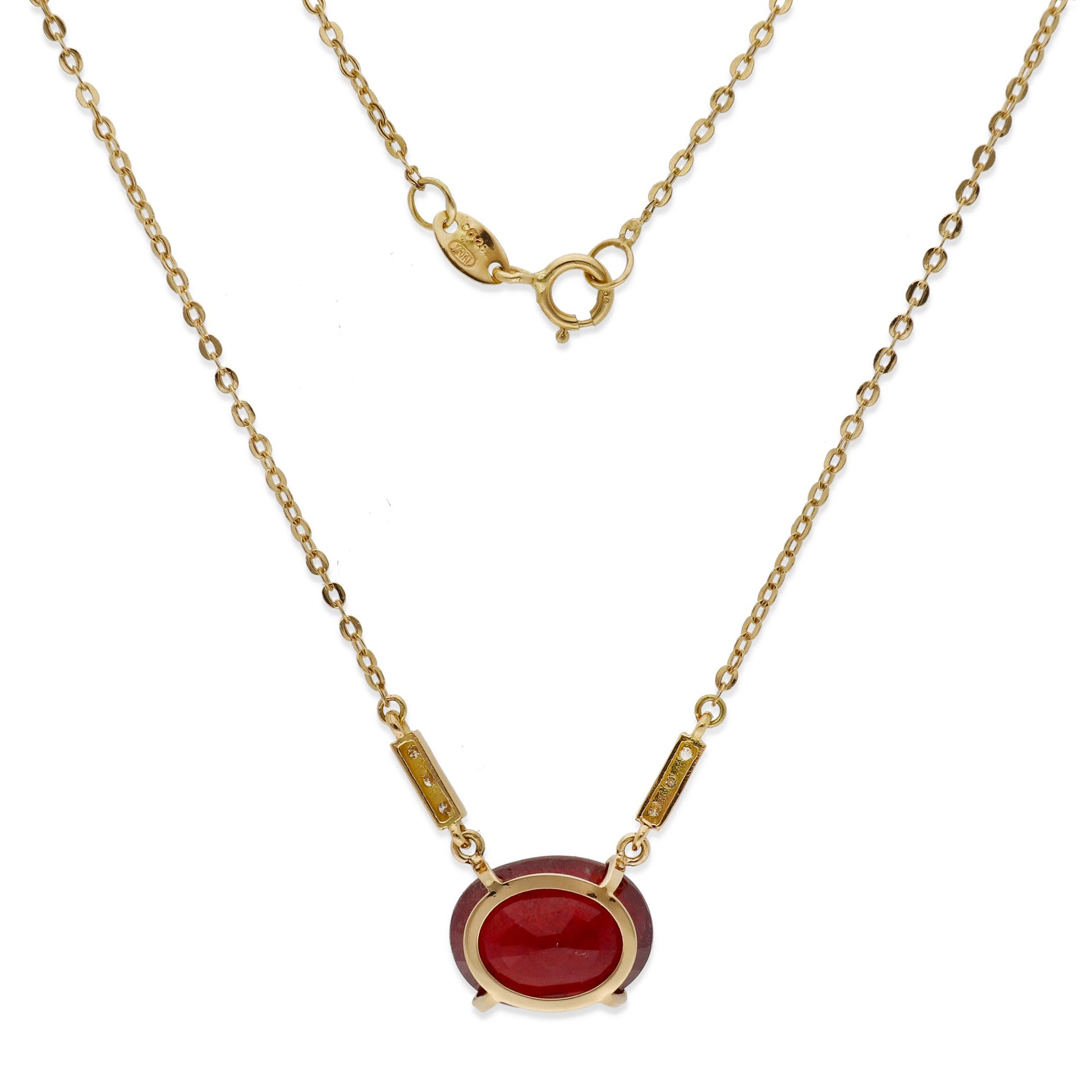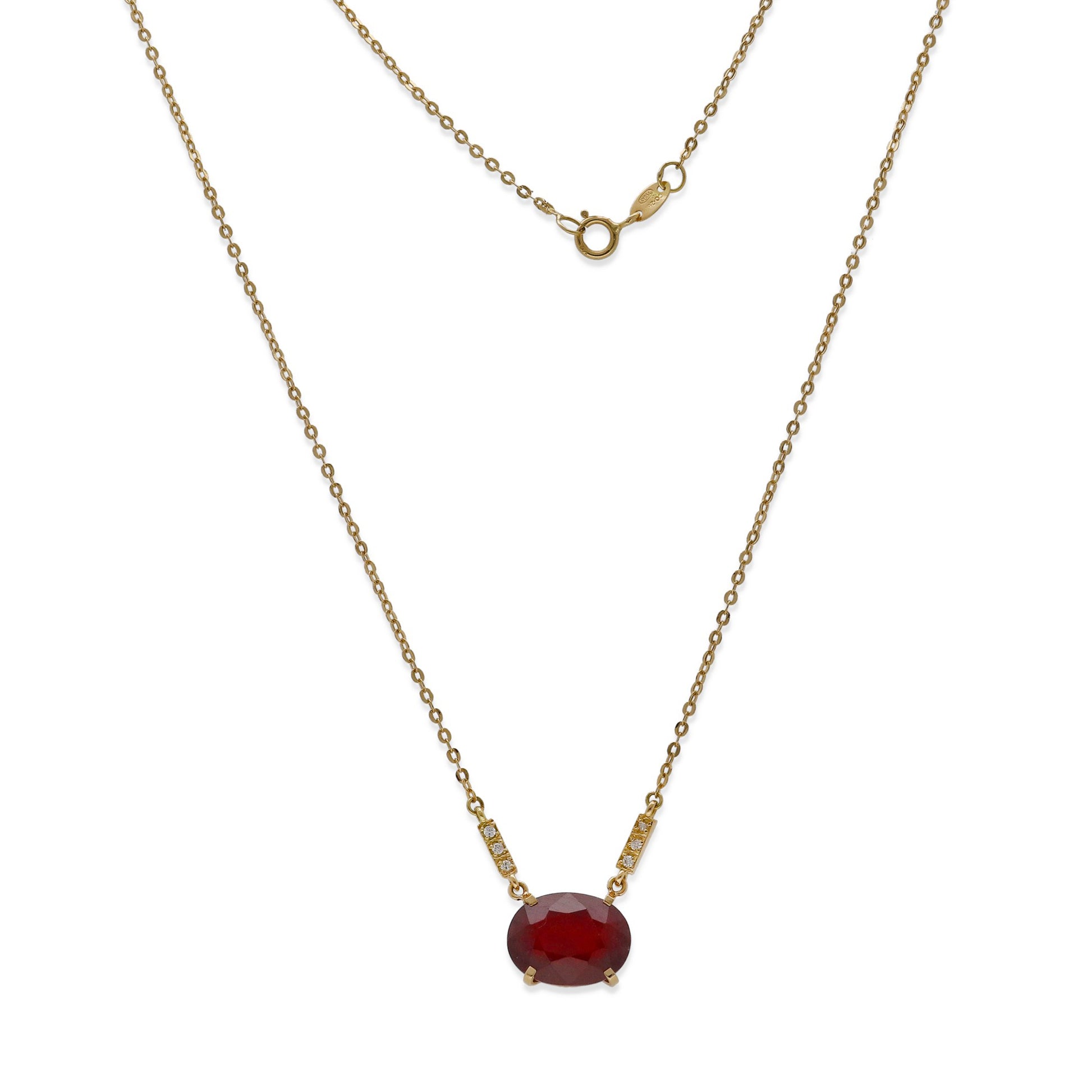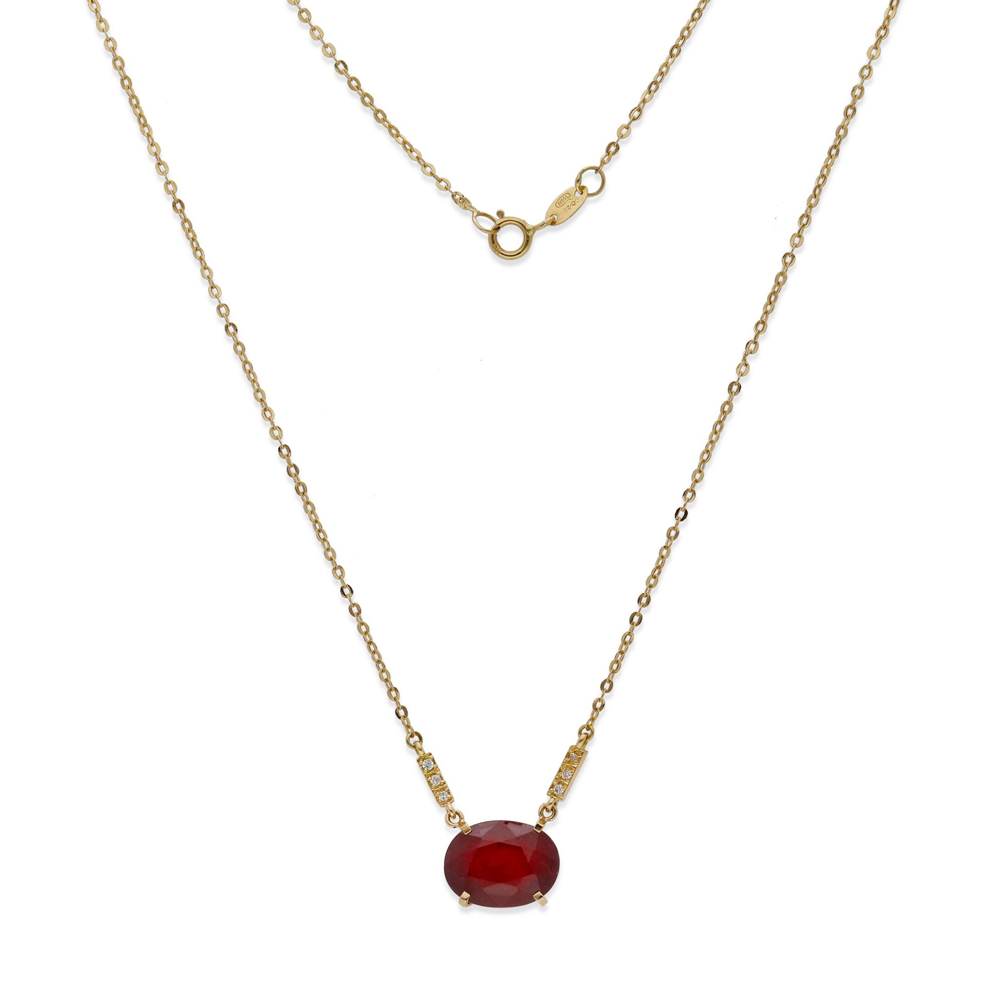 Collar con colgante en oro de ley 750 milésimas (18k) con rubí central talla oval engastado en cuatro garras de oro.