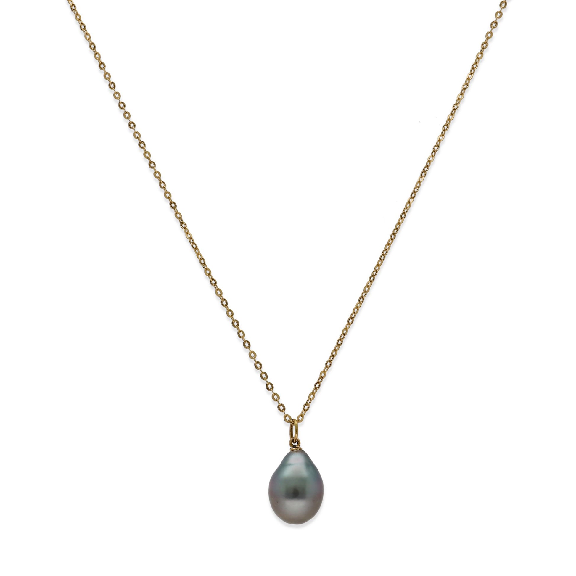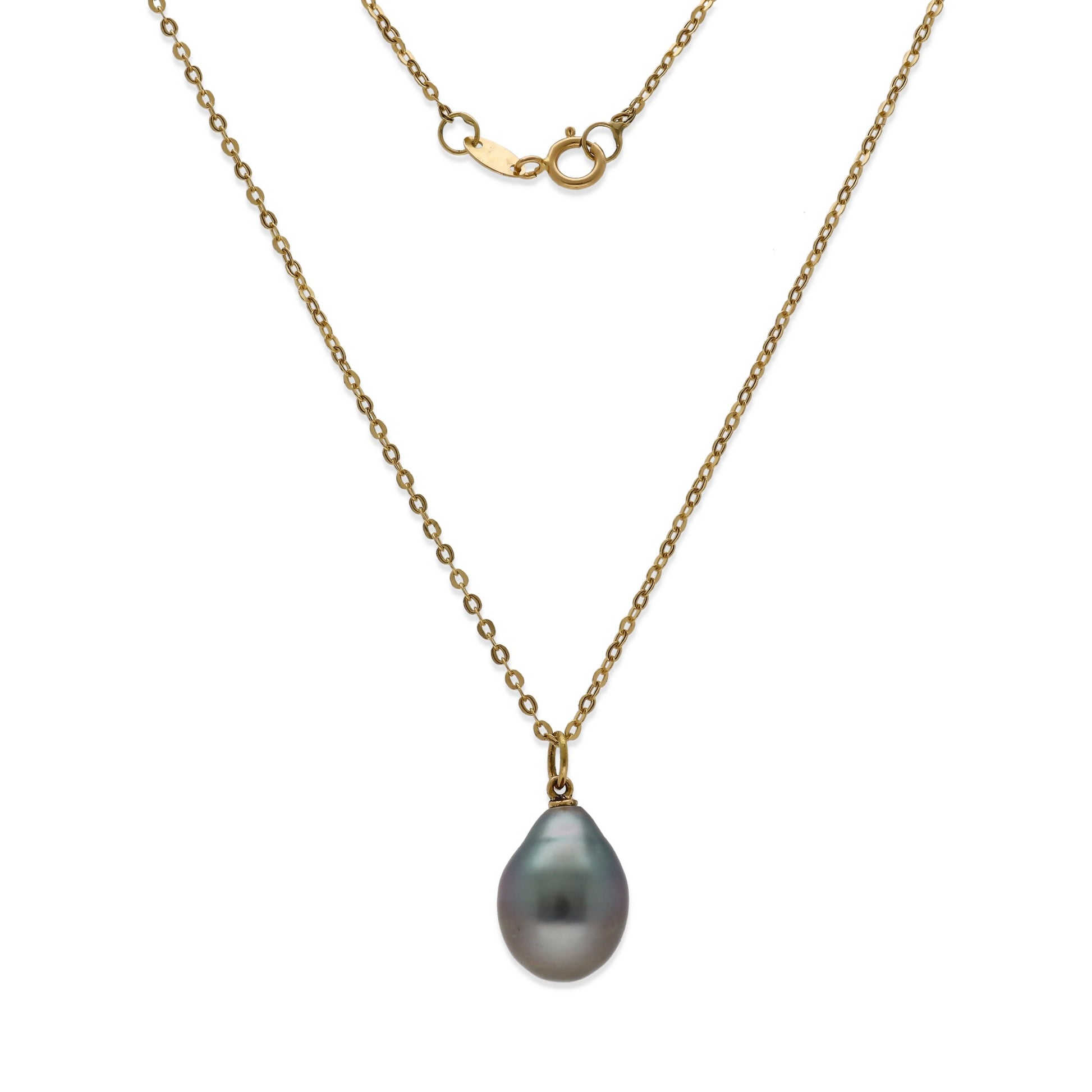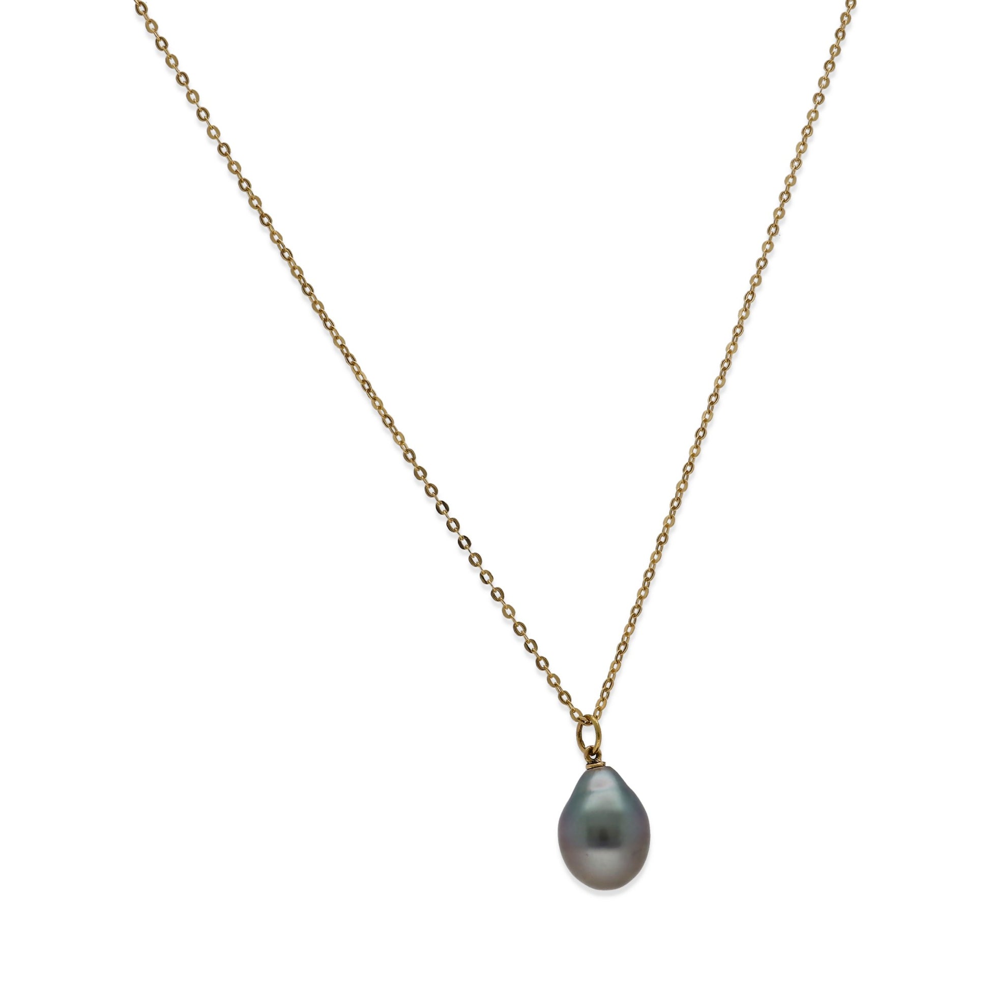 Descubra la sofisticación definitiva con nuestro collar con colgante realizado a mano en oro de ley 18k, adornado con una deslumbrante perla de Tahití en forma barroca. El lujo se fusiona con la naturaleza en esta pieza única que irradia elegancia. Cada perla, con un diámetro de entre 9 mm y 10 mm, cuenta su propia historia de belleza natural. La luminosidad de la perla de Tahití y el resplandor del oro de ley 18k hacen de este collar una elección incomparable para quienes buscan lo mejor en joyería.